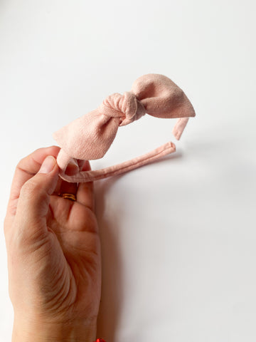 Cintillo Orejita de oso - Lino rosa empolvado